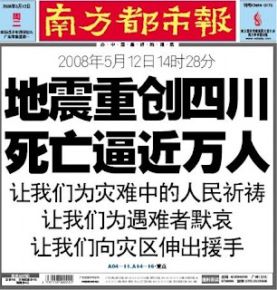 今天《南都》的號外——直擊四川大地震,讓人無不震撼和心情沉重!雖然自己和多數人一樣仍要堅守工作崗位,但還是透過自己的空間向那些遇難的人送去祈愿和祝福!