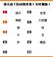 7、大閘蟹 8、狗 9、龍 10、藏獒