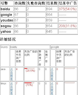 從zousuper那裏輾轉注意到技術派lfm911同學制作了一個分析和發掘廣告的工具Ad-Finder(點擊此處下載),並呈上了自己的測試結果,非常不錯!非常敬佩!“不看不知道,一看真是嚇一跳”!百度和搜狗兩家在搜索結果中放置的廣告比例是如此之高,像“體彩”、“股票”、“基金”等的廣告在百度搜狗搜索中的比例是100%,強啊!像“老虎機”這樣的信息在網上這麼多,怎麼就沒有部門去監管一下呢?盡管police有“打虎行動”但恐怕是“春風吹又生”罷了。